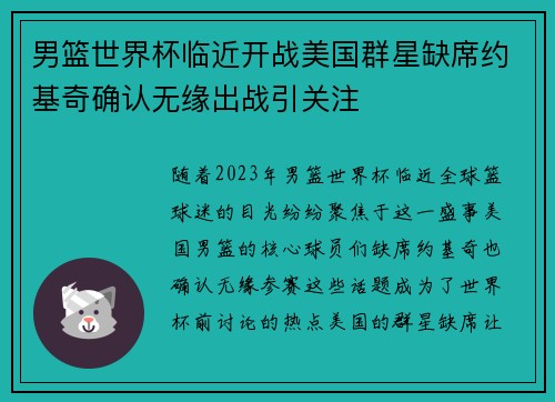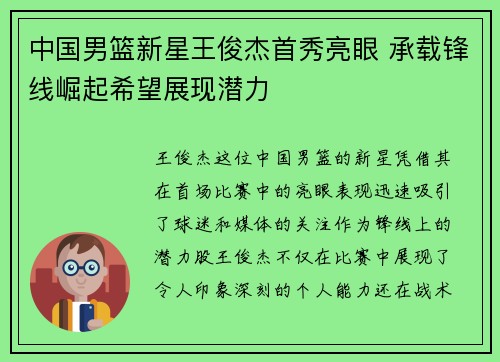 在中国男篮的备战过程中,赵睿作为球队的核心球员之一,一直以其坚韧的精神和卓越的球技受到了球迷和媒体的广泛关注。近日,赵睿直言亚洲杯的目标是要争取奖牌,带领中国男篮冲击领奖台,展现出强烈的信心与决心。这一表态不仅为球迷注入了更多的期待,也展现了中国男篮在国际舞台上的雄心。在接下来的篇幅中,本文将从四个...
